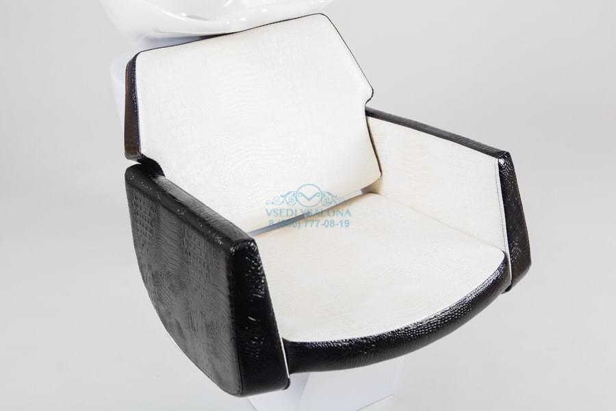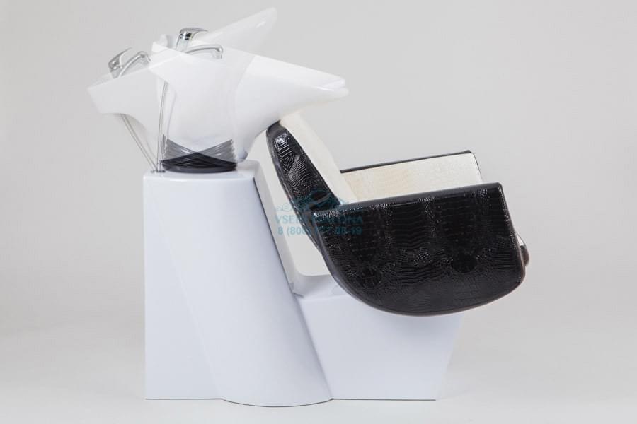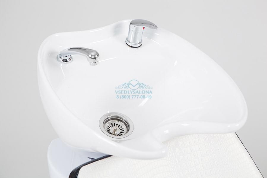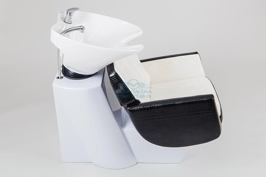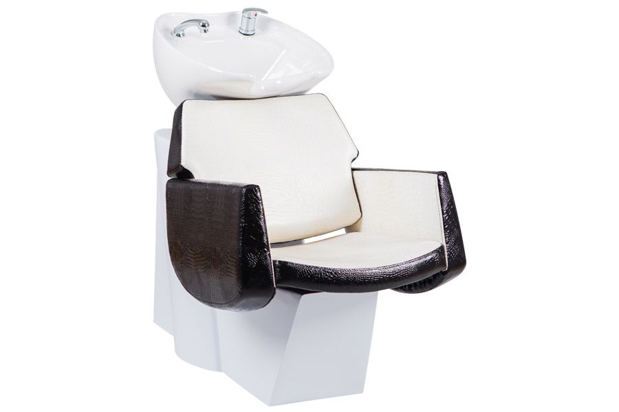 Классическая парикмахерская мойка на металлическом каркасе с креслом – хороший выбор для салона красоты любого класса. Керамическая раковина со смесителем подойдет для мытья коротких и средних волос, а двухцветное кресло порадует своим удобством