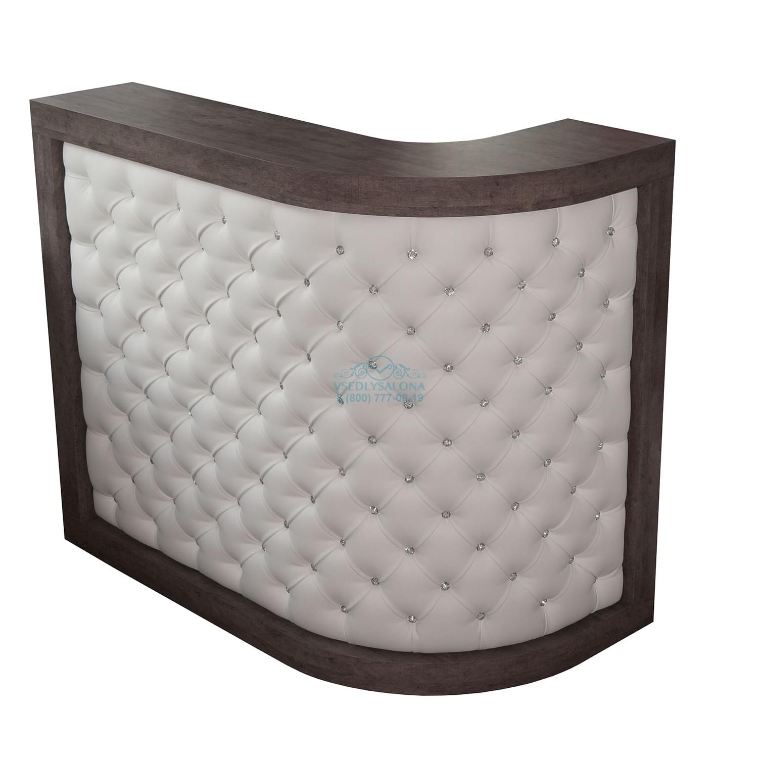 Администраторская стойка «Соната» сразу же привлекает к себе внимание. Каретная стяжка с мягкой текстурой выглядит современно и стильно, придает вашему заведению статуса и изысканности. Дополнительный эффект достигается за счет использования элегантных резных ножек, выступающих в роли некоего акцентного элемента. Со стороны администратора практически всю площадь занимают полочки и дверки, где можно разместить все для работы и личные вещи, если надобность в этом есть. Цвета отделки можно выбрать практически любые, что позволяет реализовать самые креативные идеи и придать вашей парикмахерской или салону красоты больше индивидуальности.