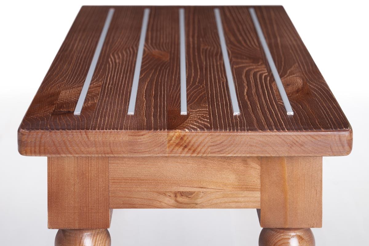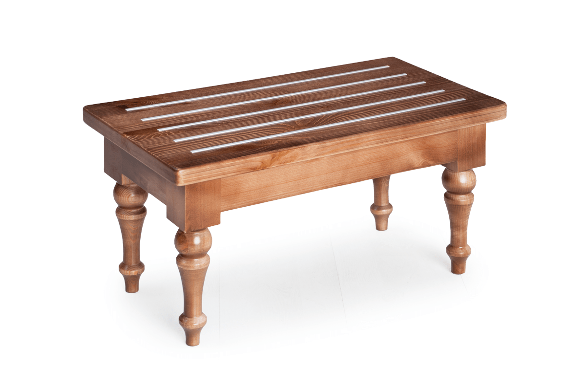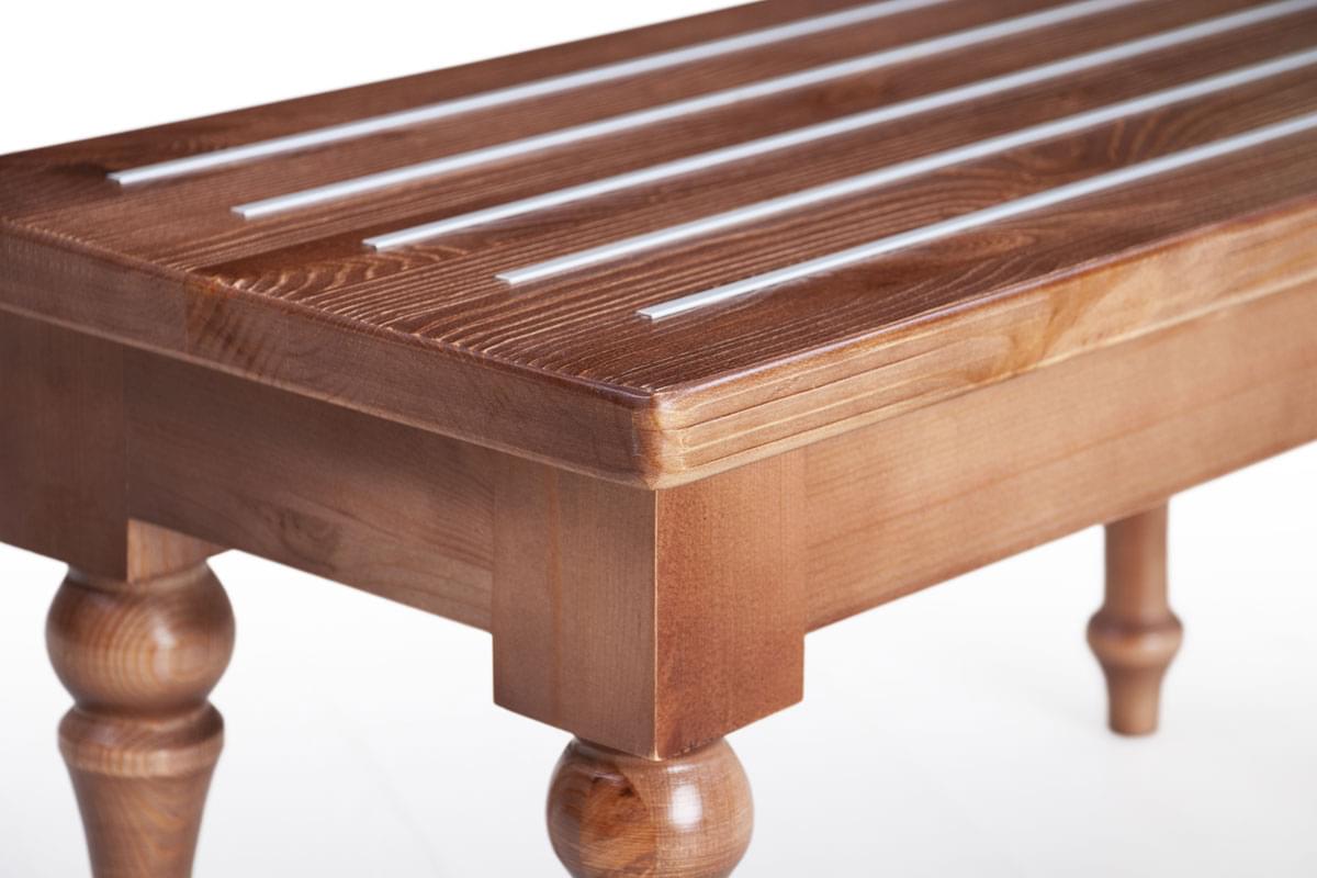 Багажница Enthusiasm (столик для чемоданов) – необходимый атрибут мебели гостиничного номера. Данный предмет интерьера есть во всех отелях и гостиницах, которые заботятся об интересах и комфорте клиентов. Данная модель багажницы изготовлена из массива сосны. Деревянный каркас очень прочный, а текстура натурального дерева наполняет интерьер спокойной и приятной атмосферой. На верхней поверхности багажницы расположены металлические параллельные вставки, которые помимо декоративной функции выполняют практичное назначение. Чемоданы и сумки не будут скользить по лакированной поверхности, царапая ее. Ножки фигурные.