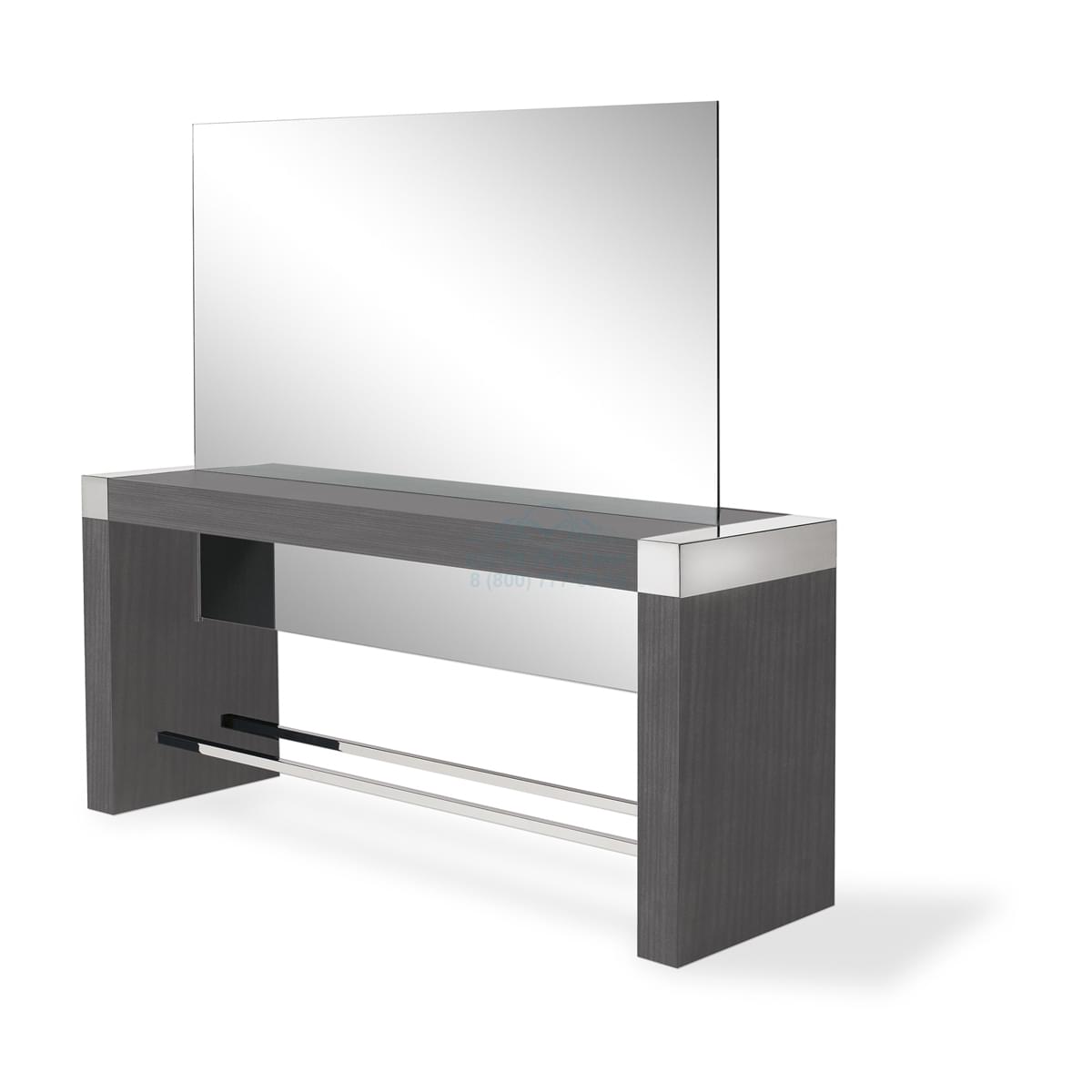 Сдвоенное рабочее место мастера на четыре места на основе из ламината с хромированной подножкой и декоративной отделкой из металла.Размер:200x164x55