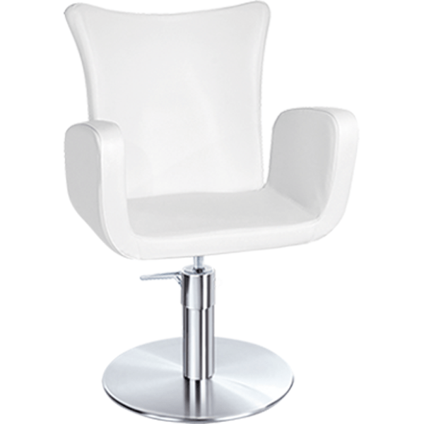 Кресло для клиента изящной формы, с высокой спинкой, выполнено из высококачественного поролона, каркас обтянут искусственной кожей, мягкие подлокотники. Комплектуется стационаром, гидроподъемником с основанием на выбор: пятилучье, диск, квадрат. Размер (ДхШ): 62х58