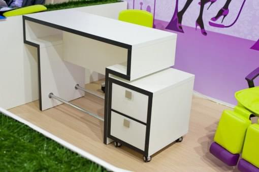 Маникюрный столик «Сабина» - это удобное рабочее место для двух мастеров маникюра. Столешница широкая, что позволяет комфортно здесь работать и размещать все необходимое – подставки для лаков, лампы и прочее. Оба рабочих места идентичны.