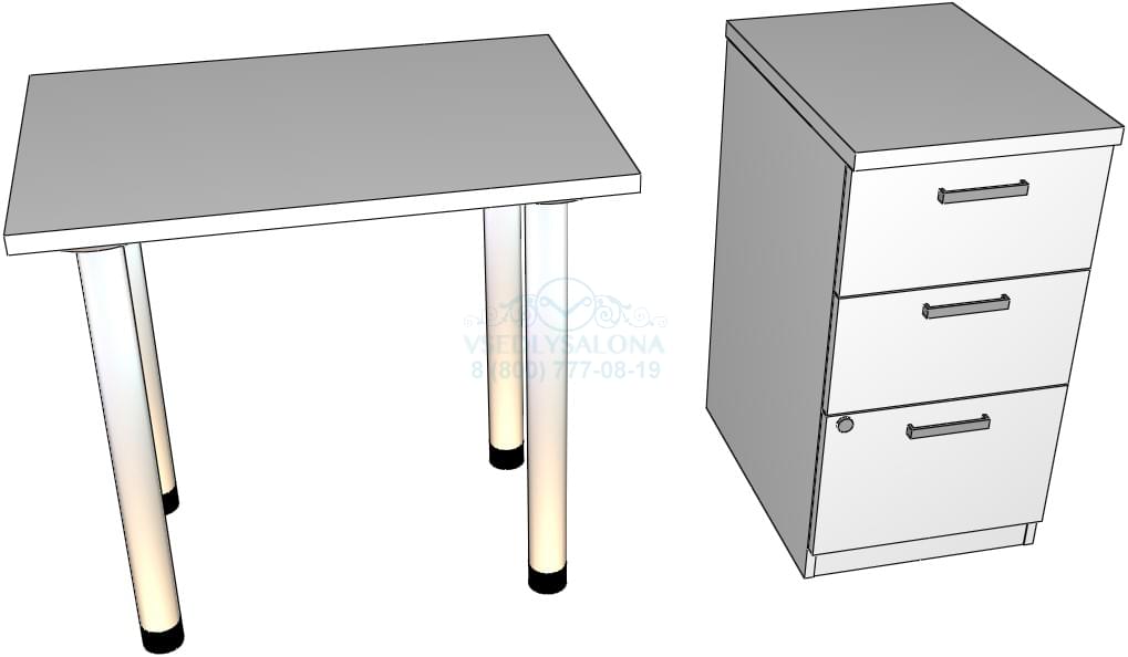 Маникюрный столик «Сабина» - это удобное рабочее место для двух мастеров маникюра. Столешница широкая, что позволяет комфортно здесь работать и размещать все необходимое – подставки для лаков, лампы и прочее. Оба рабочих места идентичны.