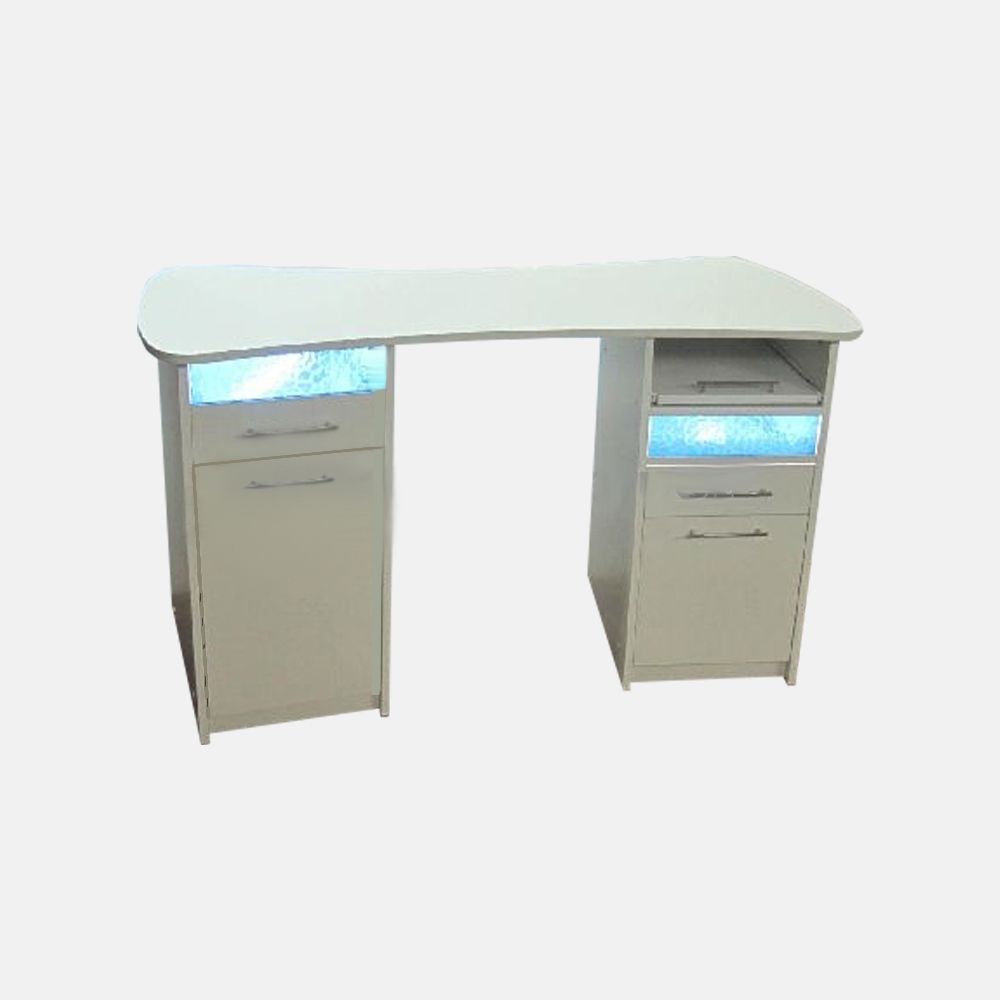 Маникюрный столик «Сабина» - это удобное рабочее место для двух мастеров маникюра. Столешница широкая, что позволяет комфортно здесь работать и размещать все необходимое – подставки для лаков, лампы и прочее. Оба рабочих места идентичны.