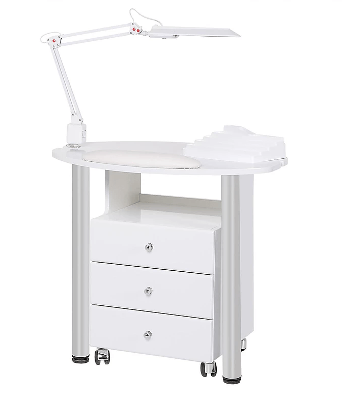 Этот компактный маникюрный стол складной МЦ-028 оснащен всем необходимым для того, чтобы сделать рабочее место мастера функциональным и удобным. Столешница, стенки и фасады выдвижных ящиков изготовлены по современным технологиям из МДФ, покрытого высококачественной ПВХ пленкой. Для легкого и удобного передвижения стол оснащен колесиками.