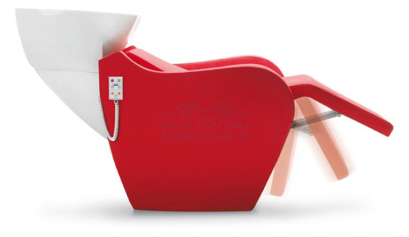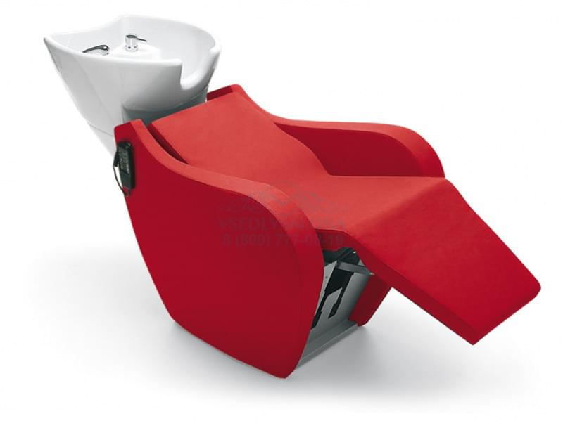 Мойка парикмахерская. Раковина белая или серая, кресло из кожзама, регулирующееся при помощи пульта сидение с подножкой. Возможен вариант кресла с массажем Shiatsu или Vibro. Размер: 79x94x107-177