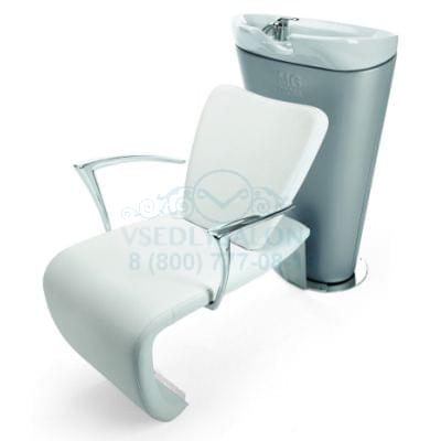 Мойка парикмахерская. Серебристый металлический каркас, раковина белая или серая, кресло из кожзама, подлокотники - алюминий. Размер: 120х98х62