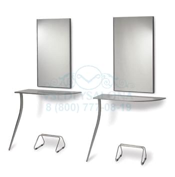 Рабочее место мастера состоит из зеркала в металлической раме, металлической полочки и подножки.