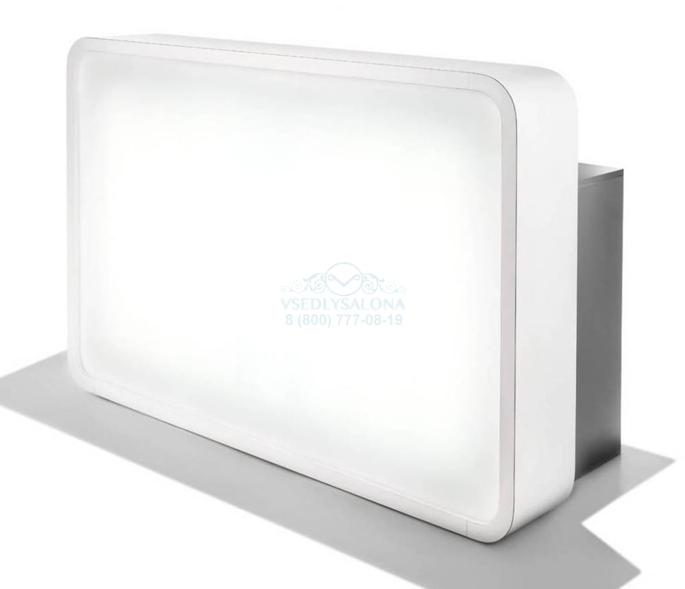 Стойка администратора из серого ламината, белый фасад с подсветкой. Размер (см): 165х69х110