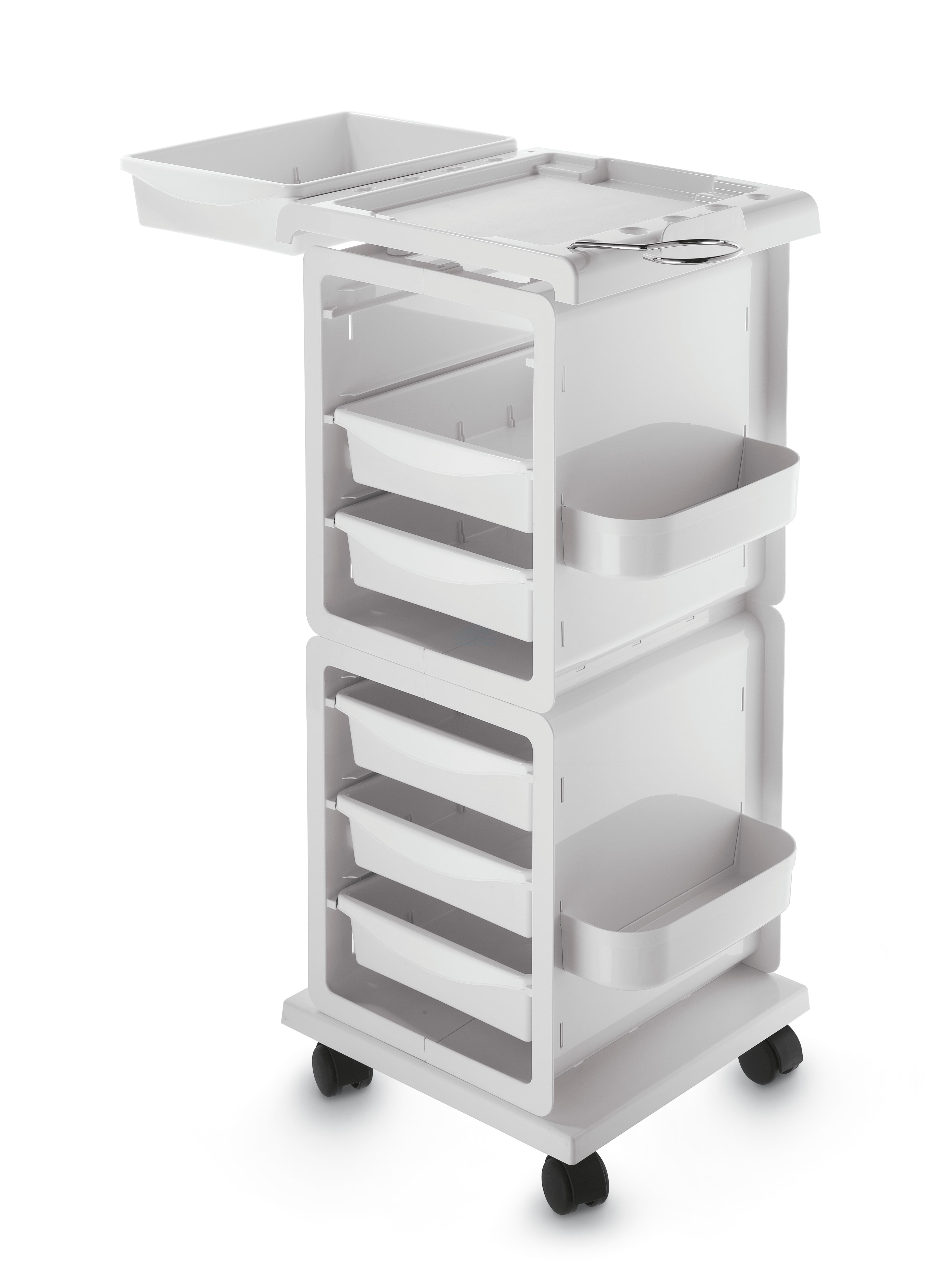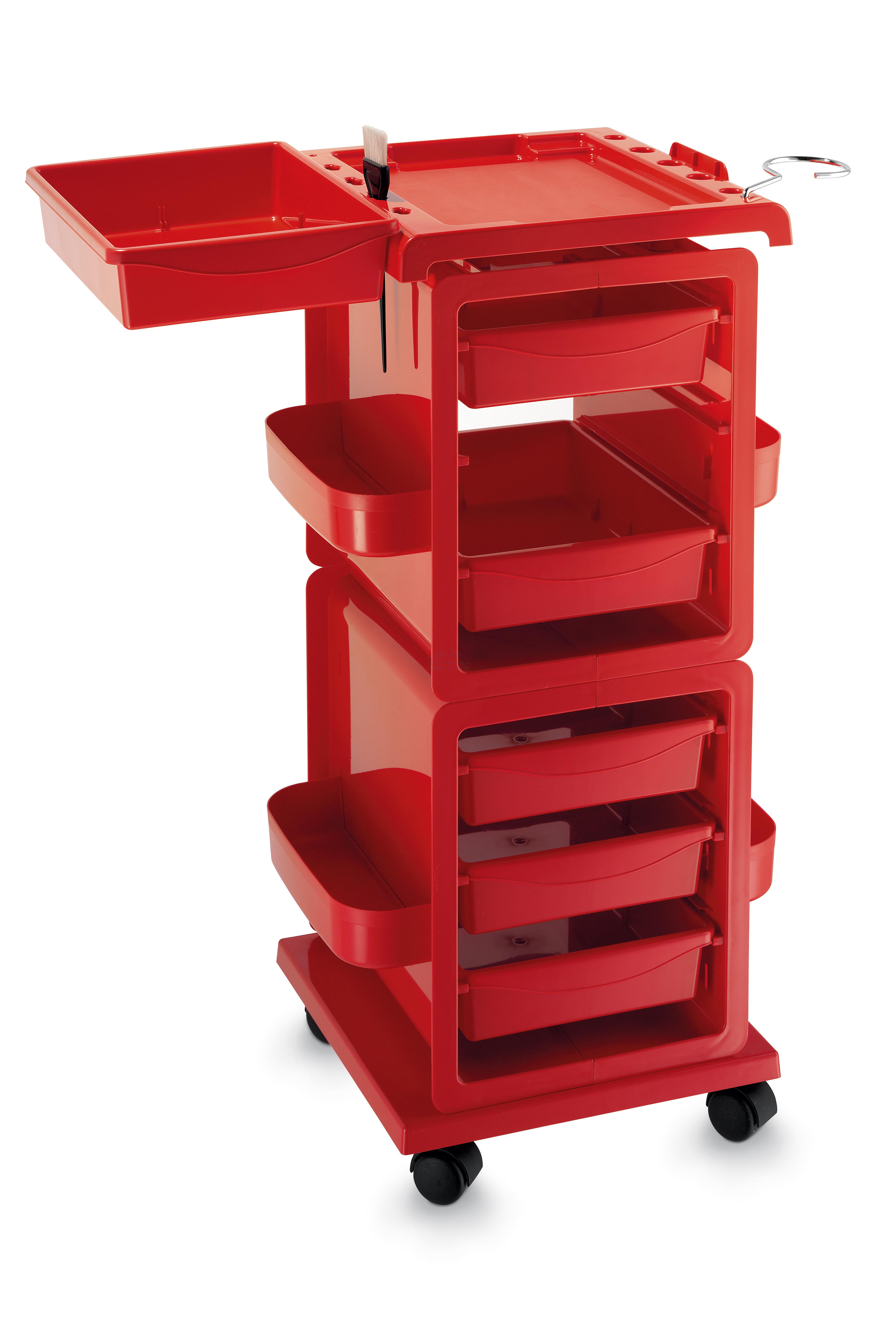 Тележка парикмахерская, выполнена из пластика, на колесиках, с выдвижными ящиками. Цвет черный, белый, серый, красный Размер (ДхШхВ): 38х38х90